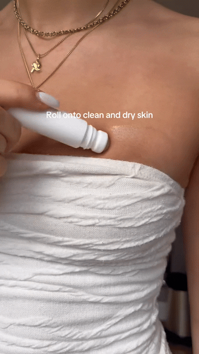 The adhesive forms a transparent, non-slip layer that sticks to the skin and holds clothing in place without leaving marks or altering the appearance of the fabric. It's quick and easy to apply with the roll-on design.